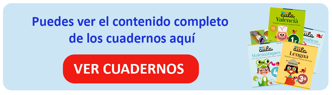 Todos los contenidos de matemáticas, lengua y valencià de Primaria en una colección de cuadernos ordenados por asignatura y curso, de 1º a 6º. Cada cuaderno incluye, gratis, la licencia para acceder a la app con todos los contenidos de todos los cursos.